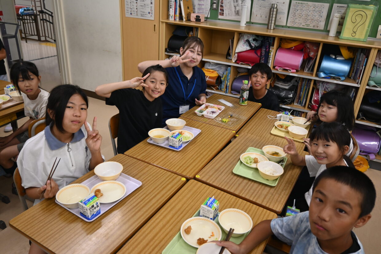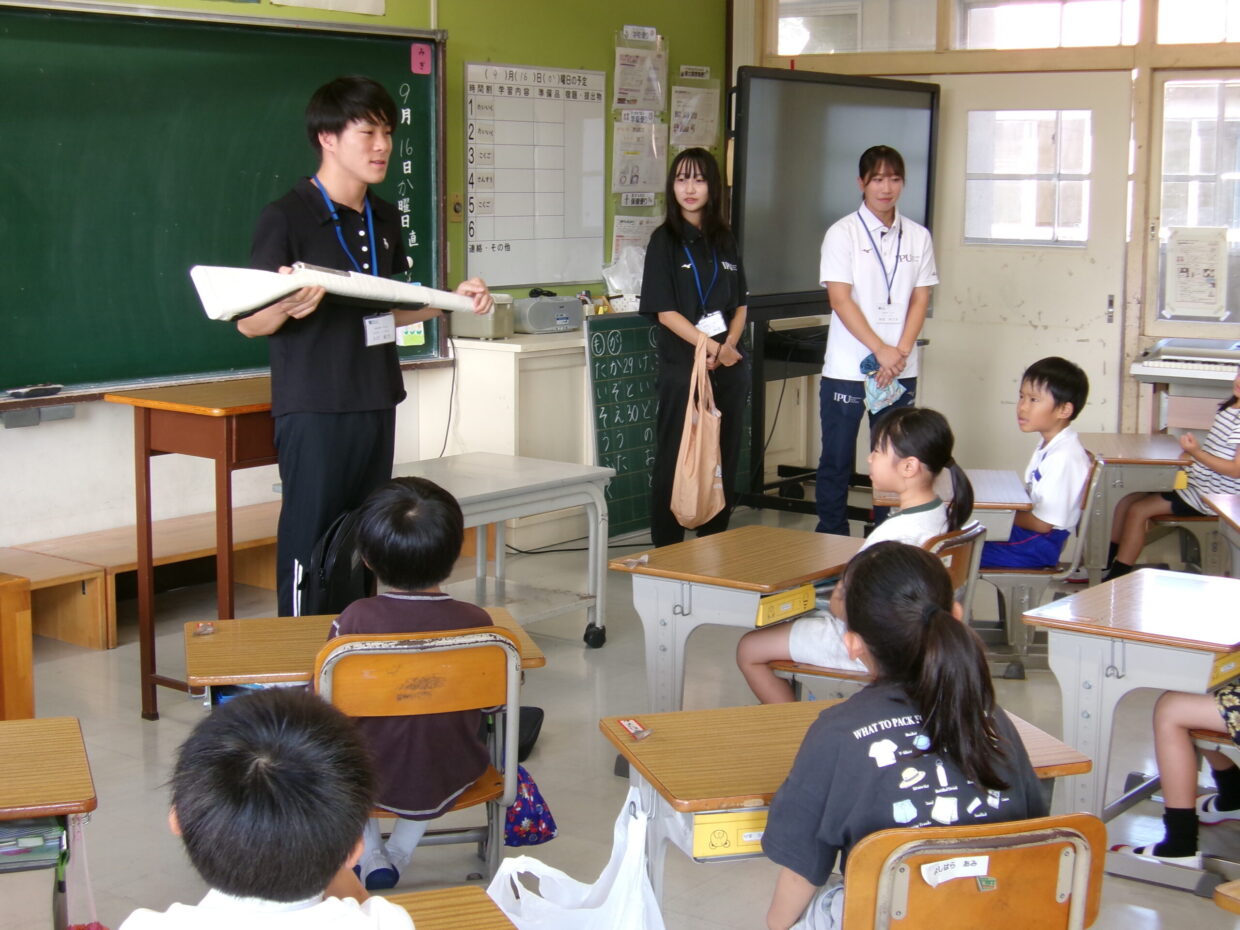 ショーに向けての練習以外の時間、学生さんは授業参観をしたり、子供たちと話をしたりして、教室で1日を過ごしました。